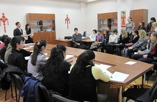 中新网10月29日电 据国家汉办网站消息,10月24日,乌克兰哈尔科夫大学孔子学院成功举办了“汉字书写”和“中文朗读”比赛。这场汉语比赛吸引了哈尔科夫大学孔子学院70余人参加,比赛场面紧张而激烈。