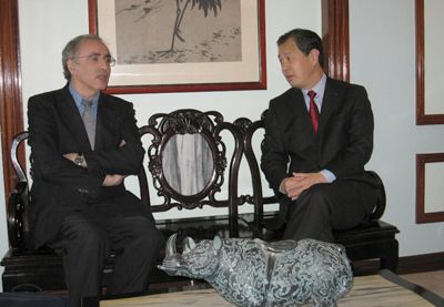 中新网11月6日电 据中国外交部网站消息,近日,中国驻法国大使孔泉邀法国教育部汉语总督学白乐桑到官邸做客,宾主品茗畅谈,重点就法国汉语教学的发展历史、特点和推广前景交换看法。以下是他们用汉语进行的对话。