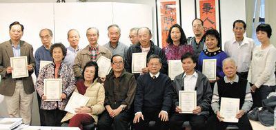 中新网11月13日电 据美国《世界日报》报道,波士顿纽英伦艺术学会日前举行初级诗词班结业典礼,经过为期十周的课程后,十多名表现优秀的学员,从老师朱绍昌手中欢喜接过结业证书。