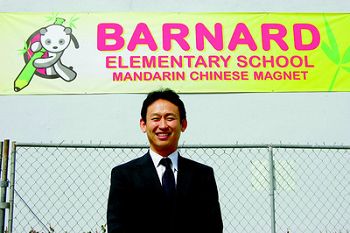 从2007年秋季学期开始,巴纳德小学各年级学生,外加学前班的小朋友,每天都要到毛蓉晖与李蕾的课室,上45分钟中文课。在两位华裔教师悉心指导下,各族裔少年儿童从汉语拼音学起,练发音、认汉字、造句子、互问互答,并在游戏的氛围中了解中美两国在民俗、风光、物产等方面的异同。