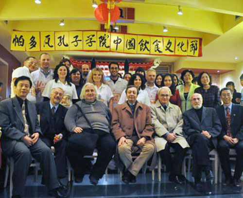 中新网11月23日电 据意大利《欧联时报》报道,日前,由意大利帕多瓦孔子学院发起并组织的“中国饮食文化节”活动在帕多瓦市中心的上海饭店隆重举行。帕多瓦孔子学院理事会理事长米拉内西-温琴佐帕教授、帕多瓦大学副校长亚历桑德罗-马丁教授、副校长阿多内-布兰达利萨教授和帕多瓦孔子学院全体员工以及广州大学和帕多瓦大学的交换生出席了活动。活动还邀请了当地知名侨领、华人华侨代表及部分当地居民出席。