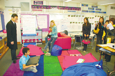中新网11月25日电 据美国《世界日报》报道,来自北京语言大学的多位“对外汉语”工作学者,日前考察圣地亚哥巴纳德小学的中文教育,与韩裔校长朴东彬及师生切磋经验。