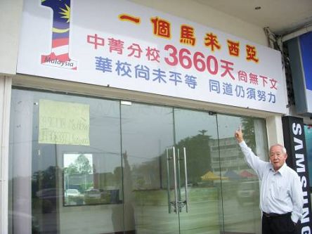 华教元老陈玉康向记者指出,计时牌以贴纸方式每日更新号码,该招牌从10天前开始挂上,到30号已经迈进第11天。