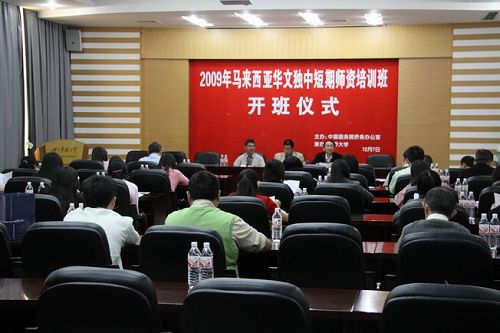 中新网12月7日电 据华侨大学网站消息,由中国国务院侨务办公室主办,华侨大学承办的2009年马来西亚华文独中短期师资培训班12月7日上午在陈嘉庚纪念堂会议室举行开班仪式。华侨大学副校长吴季怀出席开班式。