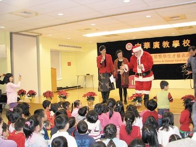 中新网12月24日电 据美国《世界日报》报道,波士顿中华广教学校上周末在该校礼堂举行“圣诞联欢会暨学生才艺表演”,200多位该校师生与家长热情参加。多才多艺的学生们以歌唱、乐器、朗诵等演出,向教师和家长展示一年的学习成果,给大家带来节日的欢乐。