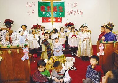 中新网12月25日电 据美国《侨报》报道,纽约美华中文学校23日举办“圣诞联欢会”,上百名小朋友表演了老师们精心编排的文艺节目,不少家长前来观赏孩子的演出,还用摄影机拍下温馨的时刻。。