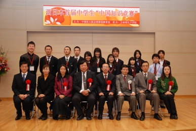 此次竞赛活动的宗旨是为了激励西日本地区中学生对中国政治、文化、历史、地理等有关中国知识的了解和学习。本次比赛采取优胜选拔方式,一轮一轮地进行淘汰选拔。整个比赛经过三轮近两个多小时的激烈角逐,最终由东大阪市立日新高中的上原结梨香同学摘得桂冠,荣获最优秀奖,福井县立羽足高中的生岛雄大、兵库县里芦屋国际中学的白坂梨霞、私立日星高中的西田聪和东大阪市立日新高中的大西里奈同学获得了优秀奖,其他选手均获得鼓励奖。