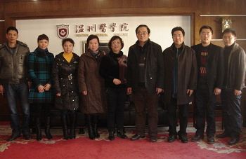 中新网1月19日电 据温州侨网消息,1月15日,温州医学院党委副书记陈肖鸣、统战部长陈肖沫、温州医学院国际教育学院院长胡臻等领导会见了到访的温州侨办副主任许捷及文宣处有关人员一行3人,双方就海外华文教育面临的形势和今后的合作意向进行了交流。