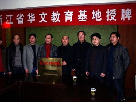 中新网1月29日电 据浙江侨网消息,1月27日上午,浙江省诸暨中学举行“浙江省华文教育基地”授牌仪式,浙江省侨办副主任邱国栋向学校党委书记汤恭煜授铭牌。