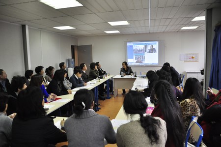 中新网2月10日电 据北京侨网消息,近日,“巴黎-北京远程网络华文教育座谈会”在法国欧洲时报文化中心举行,中国驻法使馆领事部参赞何淑琴,法国欧洲时报总编、法国华文教育协会发起人梁源法,法国欧洲时报副社长陈晓燕,北京市侨办副巡视员初世敏以及法国近20所华文学校的负责人参会。