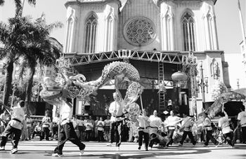 为欢度中国春节,湖北大学在巴西与圣保罗州立大学共建的孔子学院在南美最大的华人聚集城市圣保罗举办了首次“欢乐春节”庆祝活动,共持续了6个多小时,吸引了万余民众观看。(胡庆 文/图)