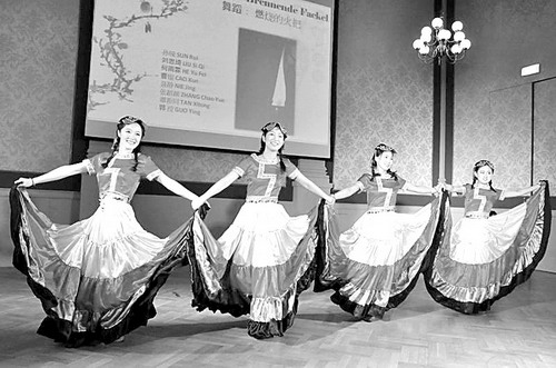 据悉,维也纳大学孔子学院成立3年来,已举办了300多场各类活动。图为中国大学生在表演舞蹈《燃烧的火把》。(方祥生 摄)