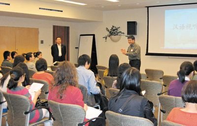 中新网4月16日电 据美国《世界日报》报道,美国韦伯斯特大学孔子学院日前在该校爱莫森图书馆会议室举办第二届汉语教师研修班。近50位圣路易地区汉语教师及汉语教学热心人士参加培训会议。