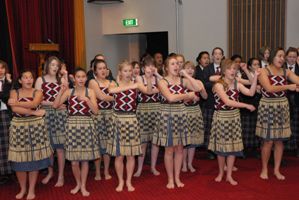 张利民与该校校长Prue Taylor一同步入礼堂,学生们用传统的毛利歌舞欢迎大使一行的到来。校长在讲话中表示,对于能够在基督城女子高中这所拥有125年历史的学校开展“汉语角”活动,她倍感荣幸,同时也感谢张利民及新西兰中使馆教育处官员、新西兰汉语顾问以及社会各界为促进汉语学习和交流的朋友们长期做出的贡献和支持。