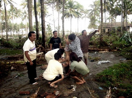 中新网7月18日电 据法新社报道,印尼海啸受灾地区——爪哇岛芝拉扎的居民在检查遇难儿童的尸体,并试图救醒一名儿童。印尼爪哇岛南部印度洋海域当地时间7月17日下午3点20分左右发生强震,引发部分地区海啸。截至北京时间18日凌晨4点45分,共有105人被证实在海啸中死亡,127人失踪。(春风)