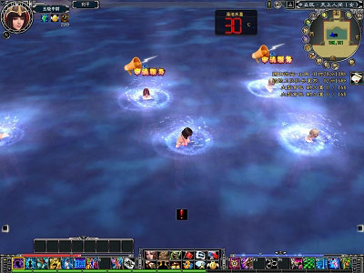 记者进入游戏后,加入了一个军长集团,在稀里糊涂打了N场战役后,终于被军长带到了赫赫有名的“天上人间”休闲中心。休闲中心被设计得灯火阑珊,内部装修非常精致。随后,记者使用的游戏人物要求接受“异性服务”,一位身材火辣的游戏美女姗姗而来,穿着性感的比基尼,在豪华的洗浴中心开始给游戏人物“做按摩”。在游戏过程中,记者才了解到,这名性感美女居然也是一名玩家,属于另一个团队,被安排在该休闲中心提供服务。记者留意到,整个浴池中不断有玩家申请“异性服务”,并在按摩过程中和性感美女聊天打趣。