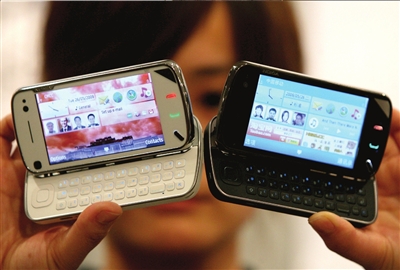 昨天,诺基亚正式发布了旗下主力高端机型N97,据诺基亚相关人士介绍,该款手机将于6月中下旬进入国内市场,预计售价在5500元到6000元之间。目前诺基亚的官网、上海旗舰店和一些指定的专卖店已经开始接受用户的预订业务。(本报记者胡雪柏古晓宇摄影报道)