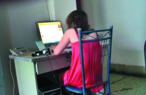 按照这家声讯台提供的地址,记者来到东圃客运站附近一个名叫“天X商务中心”的陈旧写字楼二层,接待记者的女子自称姓丁,是这家公司的负责人,态度很热情。她将记者带进一个工作间,里面有两男一女,都坐在电脑前,乒乒乓乓地敲击着键盘,忙得连头也顾不上抬,每个人的电脑屏幕上显示的都只有QQ窗口。
