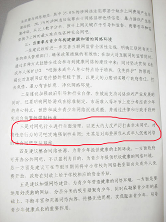 在严琦交给记者的提案文本中记者看到,提案中关于“出重拳为青少年构建健康和谐的网络环境”中第三条建议写着:对网吧行业进行全面清理,以更大的力度严厉打击非法网吧,对有违法行为的网吧实施强制性关闭;尤其是对那些纵容未成年人沉迷网络的社会网吧坚决取缔。