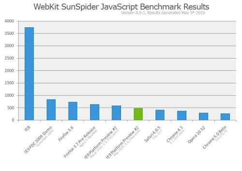 在JavaScript测试中,新版本较IE8有较大提升,但仍落后于Chrome、Opera和Safari。