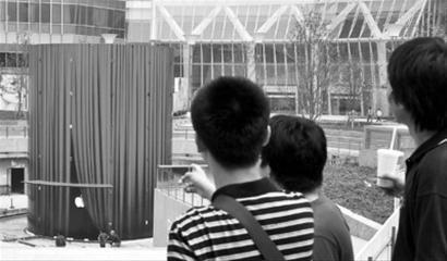 只不过揭开了红色帷幕的一角,众多“苹果粉丝”已经按耐不住激动的心情,纷纷实地围观这座神秘建筑。