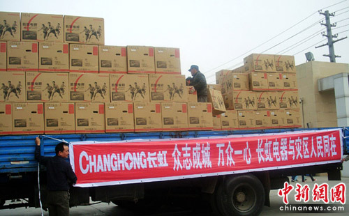4月19日,在驻地部队某部的组织下,长虹紧急从兰州、西安等库房抽调货源,发出1000台电视;20日,长虹再次发出610台电视。