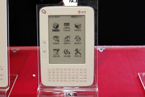 而在电子阅读器终端方面,第三方数据显示第一季度汉王在全球的电子阅读器份额中占14.7%,较2009年同期大幅成长。而在2010年5月10日,伴随着10余款新品的亮相,汉王电纸书终端的力量进一步增强。从5英寸到8英寸,从WIFI到3G,从全键盘到手写,从LCD到EPD,从WinCE到Android,从单屏到多屏,汉王电纸书带来了全方位的震撼。