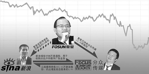 可能之一:复星国际并不知道这两家之间的交易。出于计划进入新传媒行业的目的收购分众传媒的股权,但是没有想到分众传媒把主体业务给了新浪。