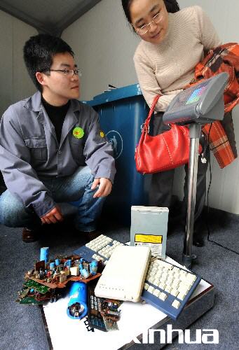 位于武汉市青山区的武汉电子废弃物回收超市于3月13日开始营业。超市由该区政府与从事废旧电池回收处置的格林美公司联合组建,回收范围包括废旧电话、洗衣机、冰箱、电视机等各种电子产品和配件。废旧电器一般按每公斤2元的价格回收。