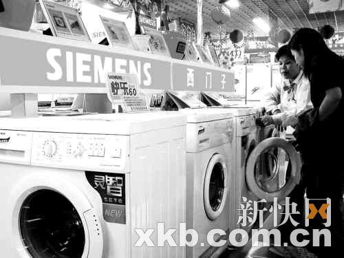 “600多元的双缸洗衣机降到399元,1200元的全自动降到800多元,不少品牌在1000元左右‘打斗’。”日前记者在苏宁电器看到,小天鹅5公斤的半自动双缸洗衣机只卖388元,而美菱6公斤半自动双缸洗衣机价格也只要499元,而且还送100元的礼品。全自动洗衣机方面,5公斤左右的洗衣机无论是国产的美菱、海尔、小天鹅还是外资的三洋、LG、惠而浦的价格都降到了1000元左右。据营业员介绍,海尔、荣事达、小鸭、松下、TCL等国内外知名品牌洗衣机全线降价20%左右,最高降幅将达到40%。