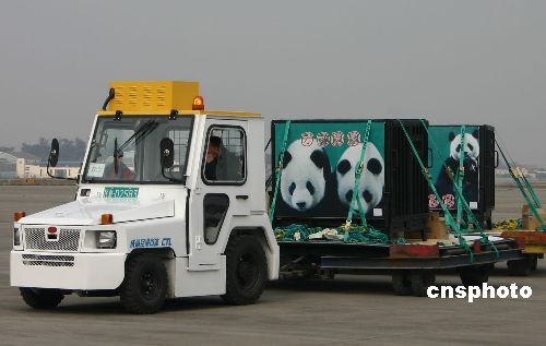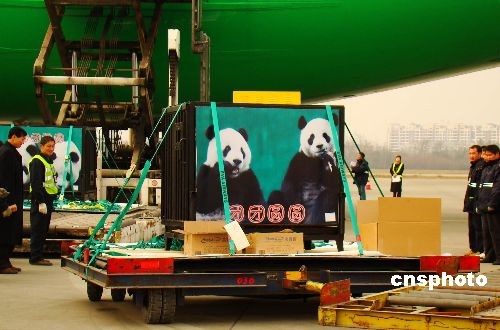 图:赠台大熊猫“团团”“圆圆”在成都登机