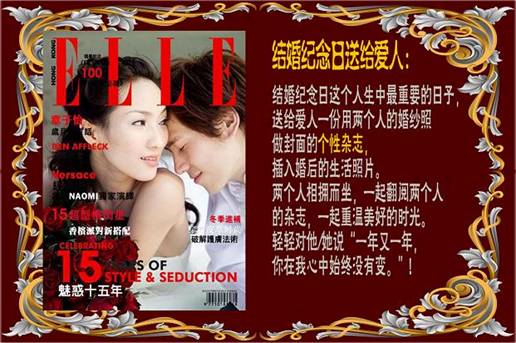 材质可以和专业媲美,但在内容上、报纸杂志情书最注重的就是个性化,因此没有固定的模片,卖家会根据买家提供的构想来排版,从而达到杂志的设计。无论从版面设计的选取、图片、标题和文字内容都由买家个人的喜好来决定,整个创建的过程也完全是自己操作,简单易行,使真正的DIY创意礼物轻易成为现实,从而量身定做属于你们独一无二的情书珍藏。实在是一份够特别有心思的礼物。