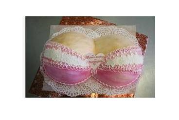 什么是胸光无限蛋糕?顾名思义,它的整体就形似一个戴有粉色花边比基尼的女性胸部,比基尼之下覆盖着一层草莓酱,如果你很猥琐地揭开它,一定会很失望,里面铺着核桃、果仁等丰富的馅料,可别想歪了!蛋糕的中间还用糖果镶有对恋人的告白,一看这款蛋糕针对的消费群体就是那些处于爱河中的男女们。