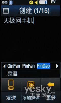 在短信方面,该机支持触屏和按键操作,内置的拼音输入法联想功能丰富,符合中国人操作习惯,支持首字母检索。若使用键盘输入,则需要按键配合触屏使用,指尖移动跨度有些大,易产生误操作。