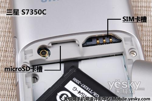 该机microSD卡和SIM卡槽并排位于电池仓上方,碍于电池阻挡,内存卡不支持热插拔。