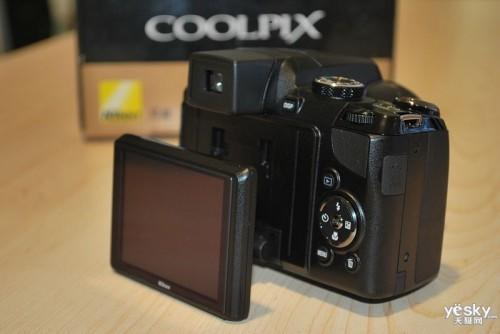 在外观方面并没有太大改进,在机身背面采用了一块3英寸的可以旋转LCD屏幕,可以方便从不同角度取景。从机身前面看,P90的手柄多少能找出尼康单反手柄的影子,手柄比较宽厚,握持起来手感不错。由于采用了24倍光学变焦,P90的镜头伸出长度要很长,配合黑色的机身,整体看起来相当专业。