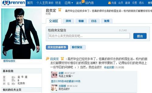 人人网明星主页上的众多明星们:光良、尚雯婕、游鸿明、段奕宏、王宝强等,还有世界小姐张梓琳和王静瑶以及以那多为代表的新一代年轻作家都纷纷更新自己的状态表示对恩师的问候,有的明星还在主页上讲述自己学生时代的趣事,而机构主页中的《环球时报》和光线传媒《最佳现场》等也是在主页上更新了教师节状态以此表示对老师们的敬意。从电话、短信、电子邮件,表达祝福的方式在不断演进,当前社交网站因其基于真实用户而产生的真实情感,成为人们表达祝福的最新选择。