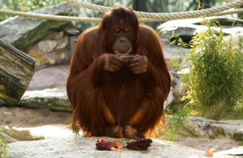 近日,生活在维也纳蒂尔加滕动物园一只名叫Nonja的母猩猩成为媒体关注焦点。这只猩猩使用特别改装的数码照相机进行拍摄。每拍摄一幅照片,照相机便会“蹦”出一颗葡萄干以示对它的奖励。蒂尔加滕动物园之所以打造动物摄影师计划是为了帮助它及其3位猿猴同伴能够在它们的围栏内自娱自乐。12月1日,蒂尔加滕动物园创建了一个在线相册,用来放这只猩猩的摄影作品,至此,它已在Facebook上拥有超过8500名粉丝。