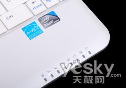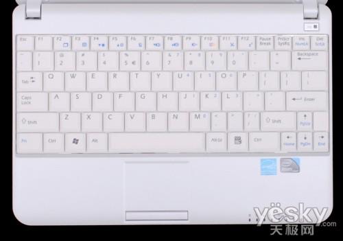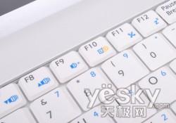 键盘手感一般,弹性和键程都不太令人满意,底部坚实度较好,向下用力按不会有明显的塌陷。对于10英寸上网本来说,由于尺寸所限,键盘的手感和舒适度很难做到出色。键盘上方设计了一排快捷键,通过Fn组合键可实现屏幕亮度、声音的调解、无线网络以及摄像头的开关,而这些快捷能够在安装Win7后被很好的识别出来,用户无需再另装驱动。
