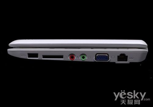 由于身形娇小,上网本往往在接口方面设计存在一些难点。U100在接口数量上比较齐全,在布局上也比较合理,由于机身前端比较薄,后侧又被电池所占据,因此接口都设计在机身两侧。配备3个USB接口基本能够满足大多数人的需求。