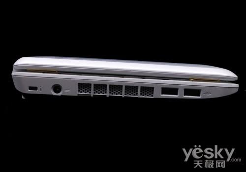 左侧接口依次为:安全锁孔、电源插孔、排风口、USB2.0×2