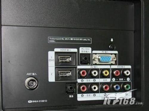 丰富的接口为三星LA32B350F1的扩展连接带来了极大的便利,3组HDMI接口的应用可以让用户外接高清播放机等数字设备,还有VGA,AV,S端子一个也不少。