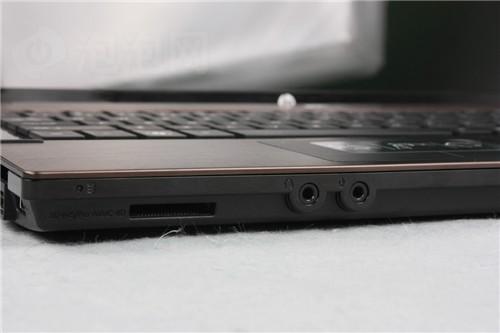 机身右侧,这里安置有电源适配器接口、DVD刻录光驱和2个USB2.0接口,将USB/eSATA接口设计在近端虽然使插拔更加方便,但可能对鼠标操作有所限制,是一把双刃剑。