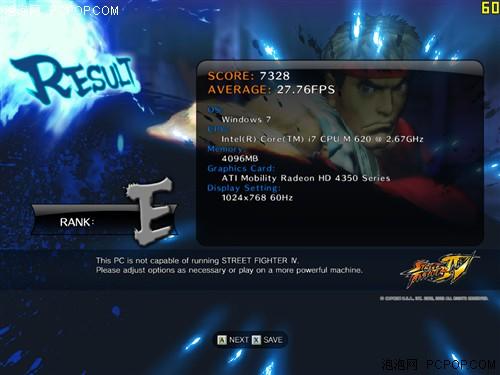 测试方案:在街霸4的测试中,我们同样选择了默认画面设置和1024×768分辨率。