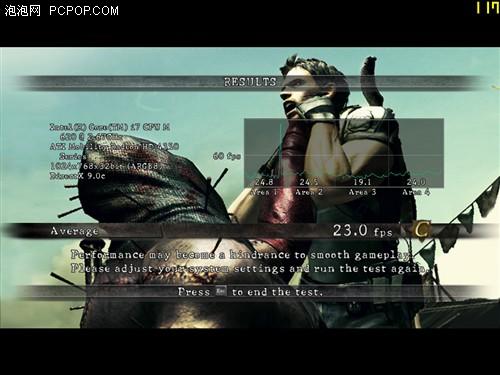测试方案:在生化危机5的BenchMark测试中,我们选择了默认的画面设置,把分辨率调整为1024×768。