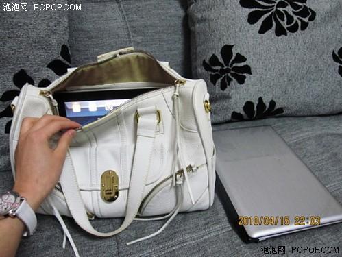 今天拿到iPad,放在包包里和姐妹逛了2小时街,手里提着包包有些重量,但觉得还可以接受,并不是特别沉,但时间长了有点勒手,俗话说“好手难提四两”。我平时喜欢背大包,可以放很多的东西,经常在地铁里看到有女孩包包里放小说,有次上班高峰时,看到一个短发MM坐着用EeePC最薄的那款贝壳机带着耳机看电影,很佩服她的闲情,但也同时发觉确实有很多志同道合的MM喜欢背大包。有人说iPad可以当电子书,地铁里看电子书的人很多,携带是个问题,这里拿自己的包包示范给大家看。