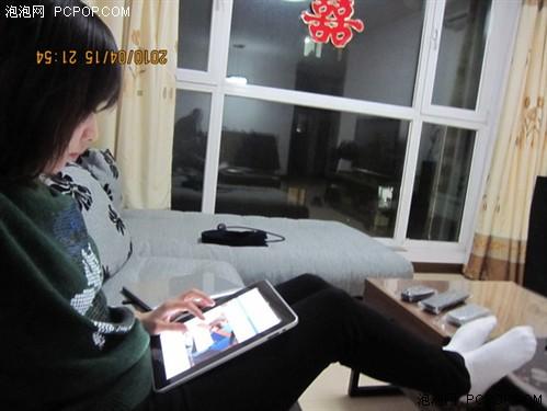 使用iPad时,视觉角度完全取决于自己的双腿弯曲程度……EeePC屏幕转轴最大是120度的开合度,可以随意调节成适合自己的角度。