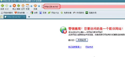 据悉,中国反钓鱼网站联盟近日也发表公告称,联盟已接到多起网民对相关钓鱼网站的投诉。为此,360安全专家石晓虹博士提醒广大网友,网友可以下载使用360安全卫士7.0版;对于那些安全性未知但又不得不浏览的网站,建议用户使用360安全浏览器的“隔离模式”,就能放心浏览任意带毒、带木马网页都不会中招。