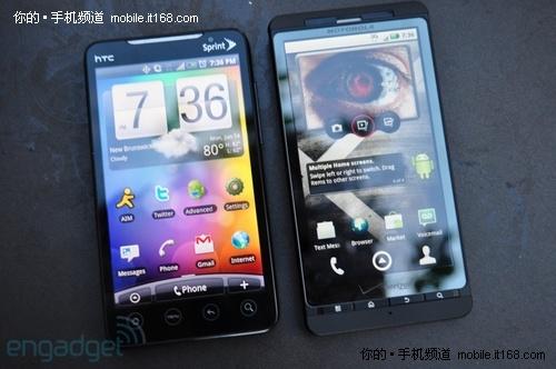 图为摩托罗拉Droid X对比HTC EVO 4G