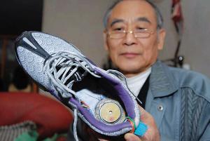 从外表上看,这双运动鞋很普通,可夜晚时将它穿在脚上,鞋子就会发出光线,足以照亮回家的路。更为神奇的是,这双会发光的鞋还能为手机电池充电(上图)。这双发电鞋的发明者就是66岁的成都老人石才俊。